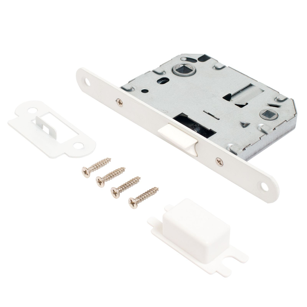 Артикул: 14546																	 Защёлка АЛЛЮР АРТ L7050PR W матовый белый, пластик овал планка 18 мм., без ручек, с фиксатором